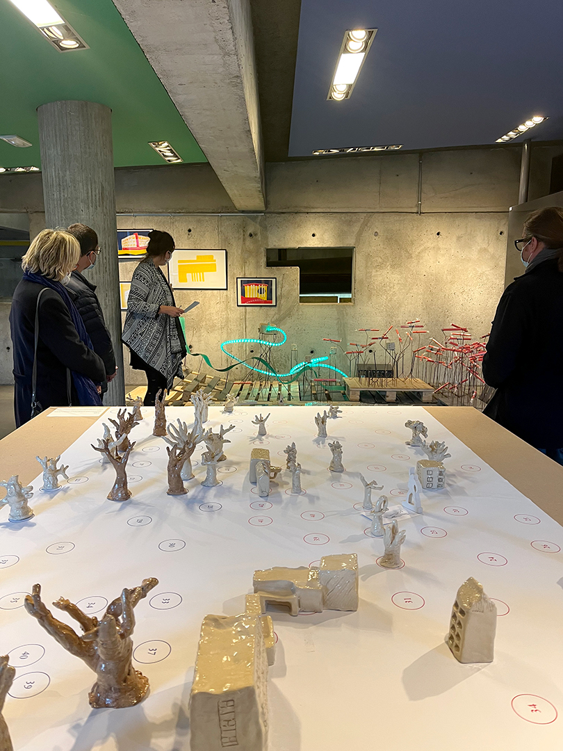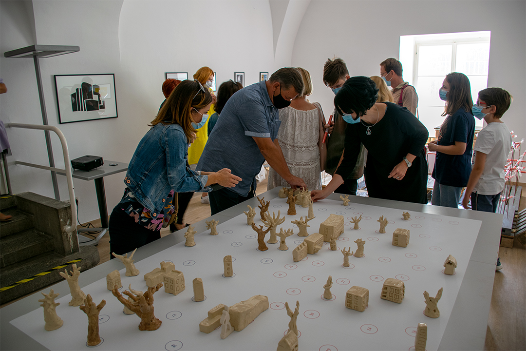 Inspired by the discussion about their city and under the guidance of teacher Mihaela Ružič, pupils of Elementary School III in Murska Sobota worked on various artworks centered around their hometown. A city maquette was made with over 50 pieces of ceramics, over 10 linocut prints and 10 photographs of the most striking buildings in the city designed by the famous architect Feri Novak.