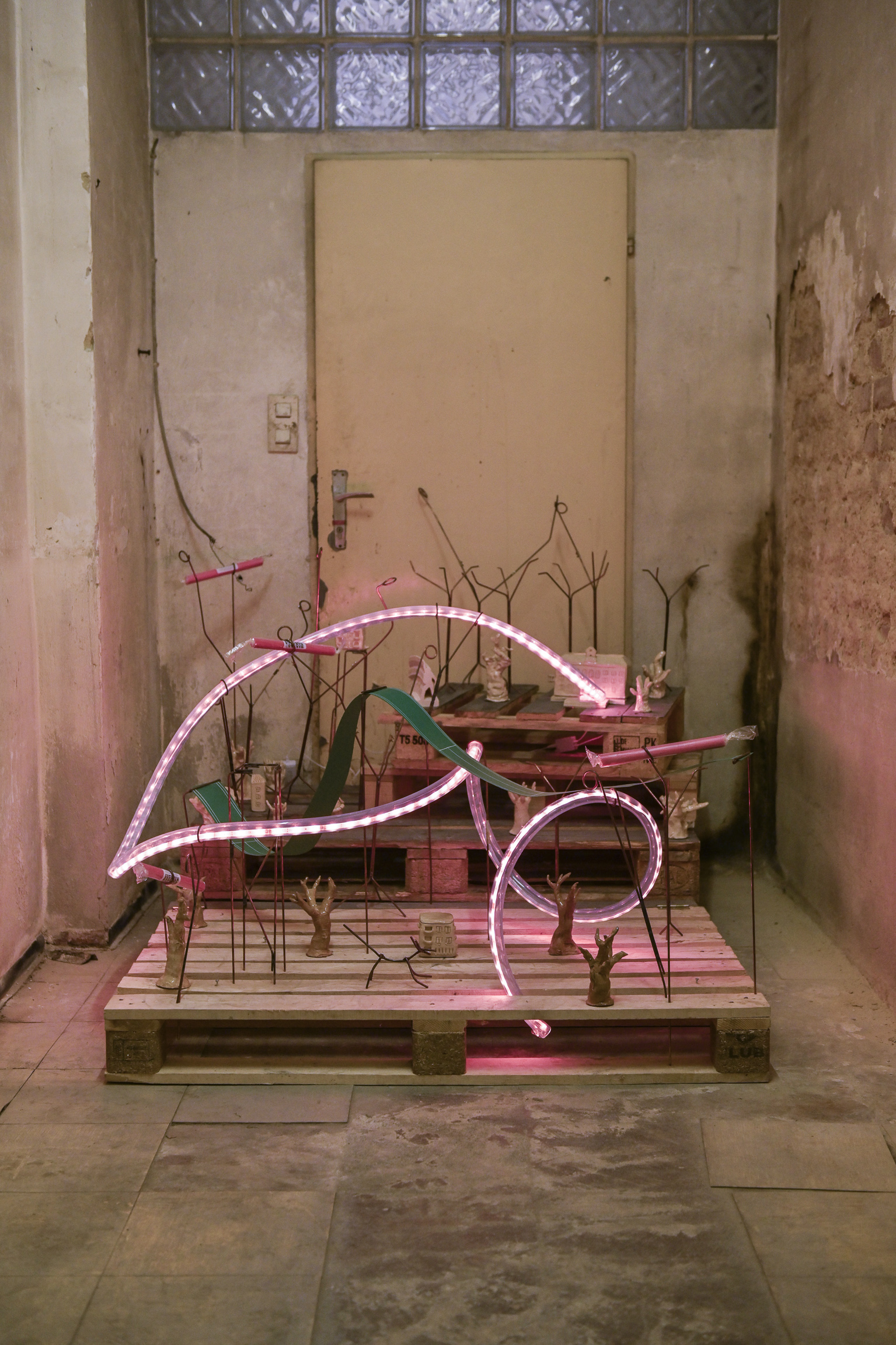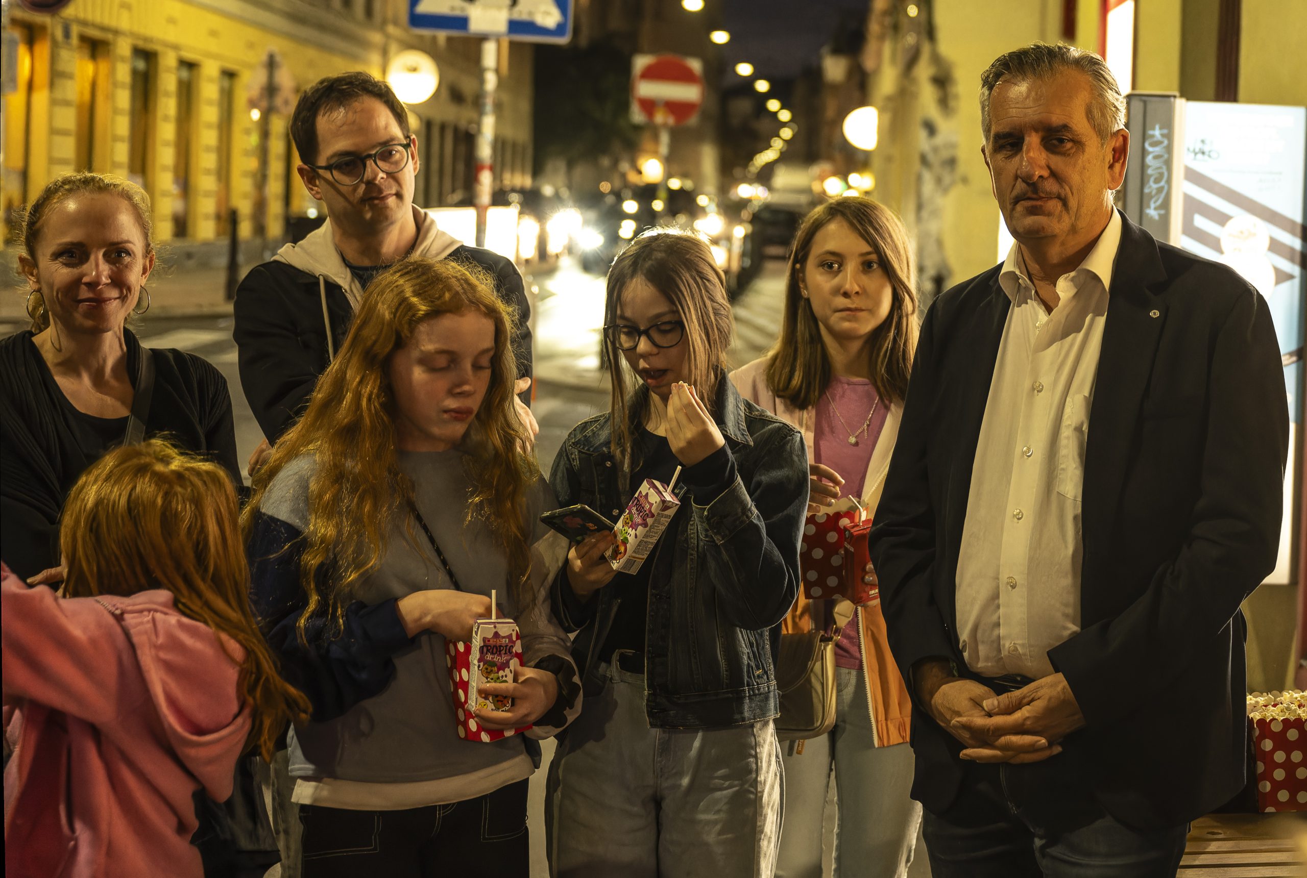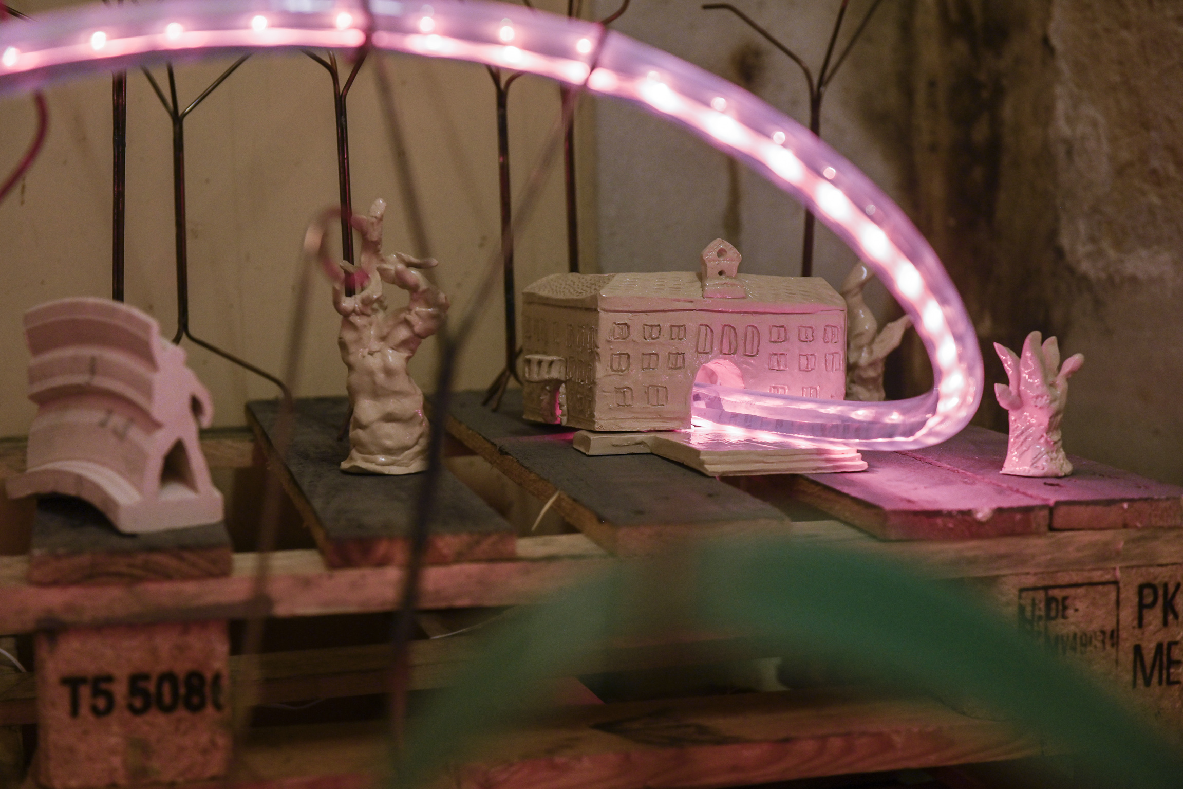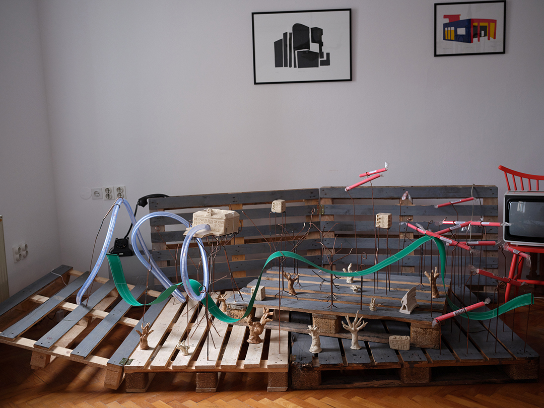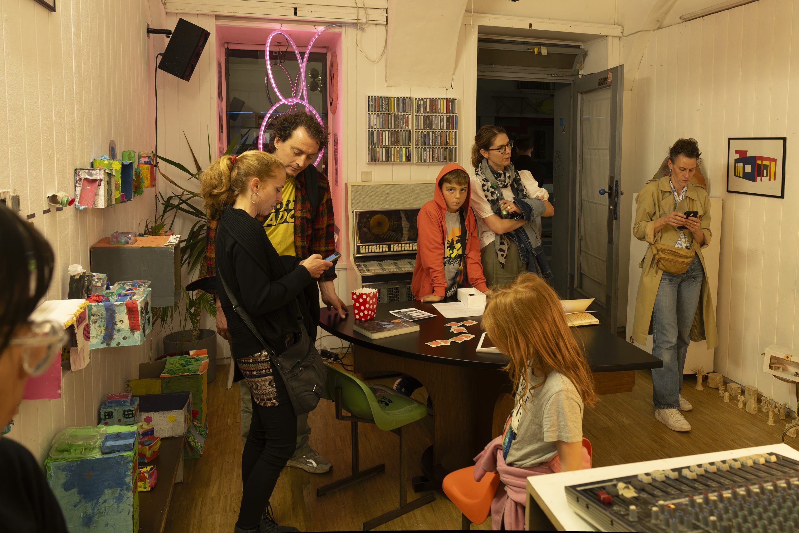 After the screening, the programme moved to the MIKK Gallery, where visitors were able to immerse themselves in the universe of a different, transformed Murska Sobota featuring big toboggans as the main mode of public transport, sports fields particularly designed for a hybrid discipline combining skate and tennis, a house of illusions, a puppy rescue shelter, a technology park with phone-growing trees, custom made candy souvenirs, and much more.