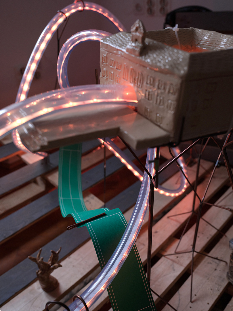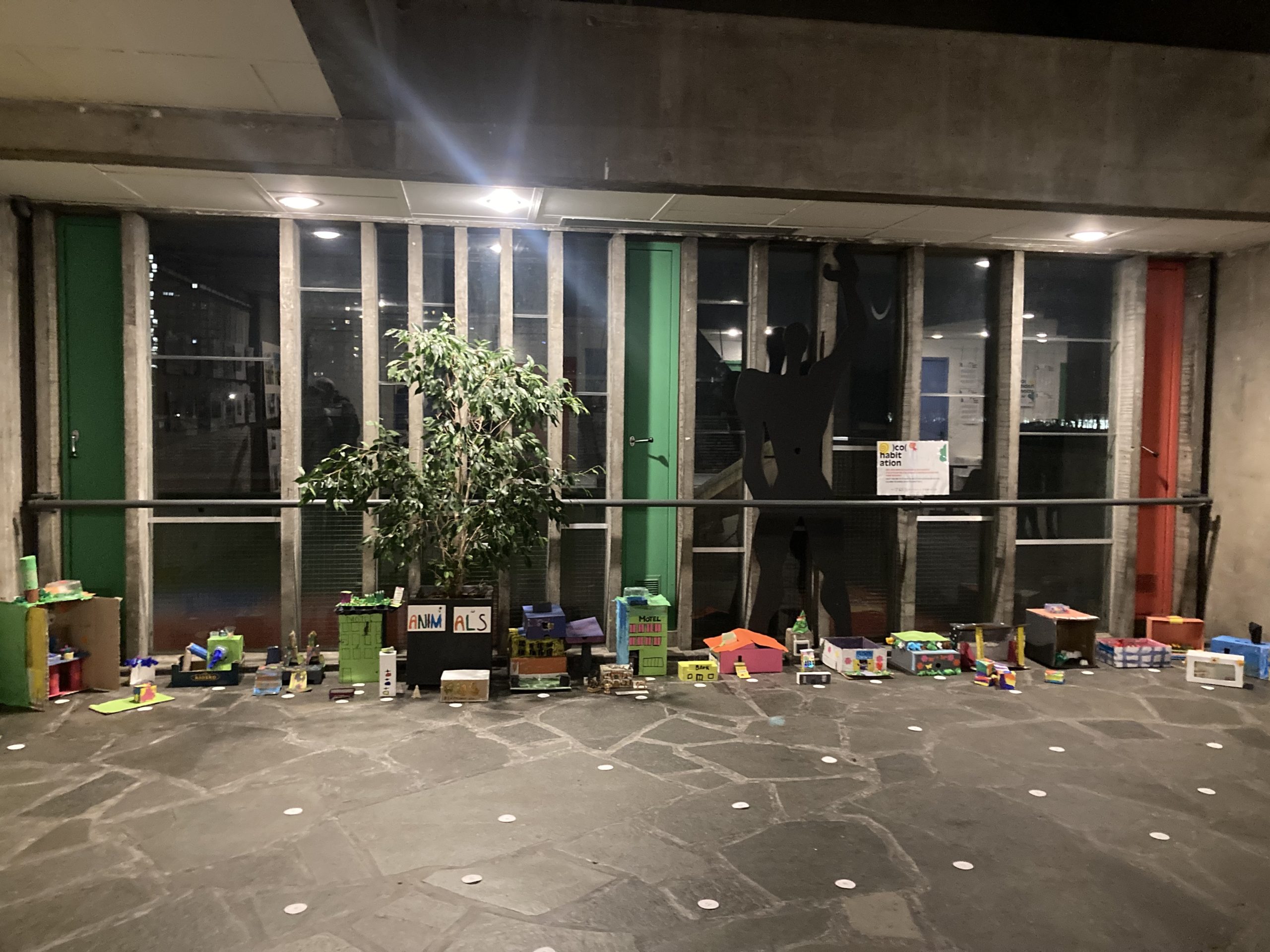 During a three-day workshop led by designers Jimmy Loizeau, Matt Ward and Sara Božanić, the children of Murska Sobota combined storytelling, line drawing and collages to develop ideas about a new shared vision of their town’s future. A collection of stories, images, sketches and plans were produced and then turned into 3D structures and models to help design the alternative city town plan.