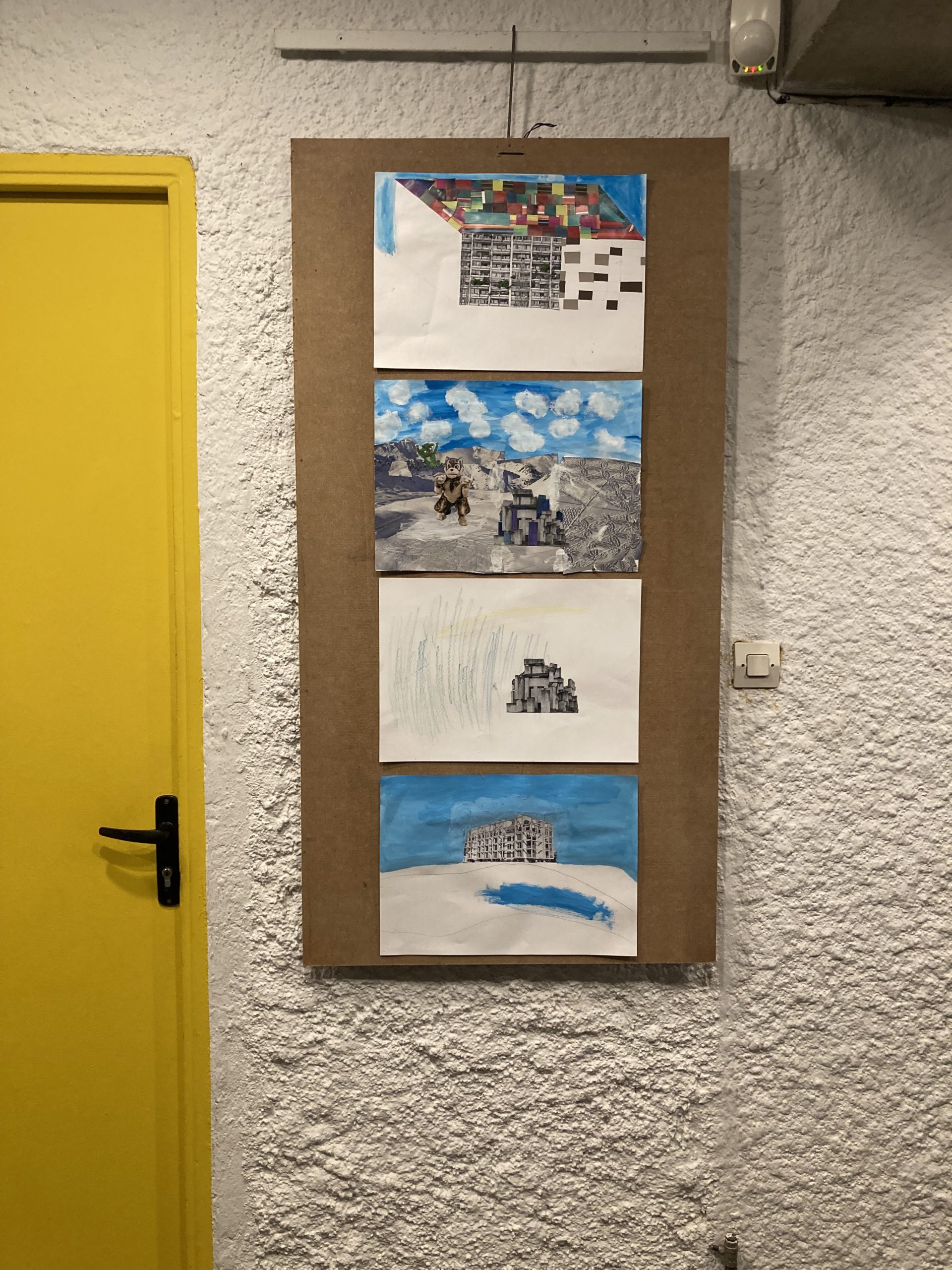 The Firminy Vert is one of Le Corbusier’s largest and most important groups of buildings in the world. Inspired by it, students and residents of Firminy took on the role of architects and urban planners and had the opportunity to experience their architectural heritage in depth over three phases: (i) UNDERSTAND – through a guided tour of Le Corbusier site, they learned about the story and history of the building and the professions of architects and urban planners; (ii) IMAGINE – inspired by old photographs, they imagined and drew the future appearance of the different neighborhoods of Firminy; (iii) CREATE – with drawings, pictures and videos sent to them by students from Murska Sobota and Vienna, they created a model of a utopian European city, as if they had been commissioned to create a new city, ideal for European children.